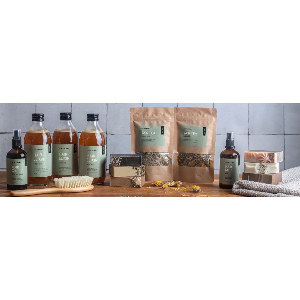 Objevte jemnou, přírodní péči pro suché, barvené a poškozené vlasy s naším Dry Hair Elixirem. Tento bylinný oplach s čistým složením může zcela nahradit běžný kondicionér a pomáhá eliminovat „vedlejší účinky“ mýdlového šamponu, jako je voskový film při vyšším pH nebo tvrdé vodě.