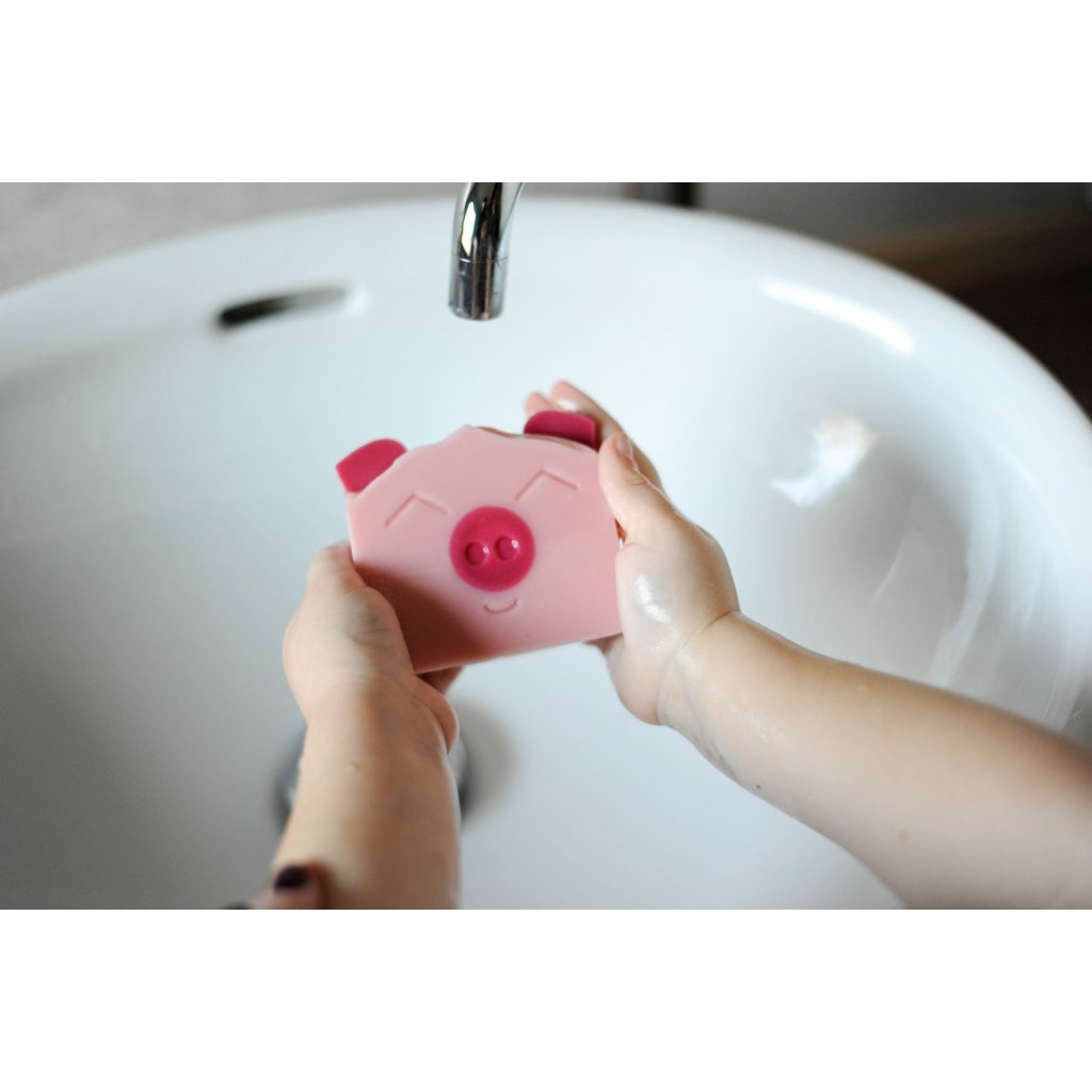 Naše prasátko není žádný čuník, poctivě se myje, a proto má krásnou růžovou barvu bez poskvrnky a voní sladce po hruškách. Jemná pěna, která krásně klouže po těle, mu náramně sluší.