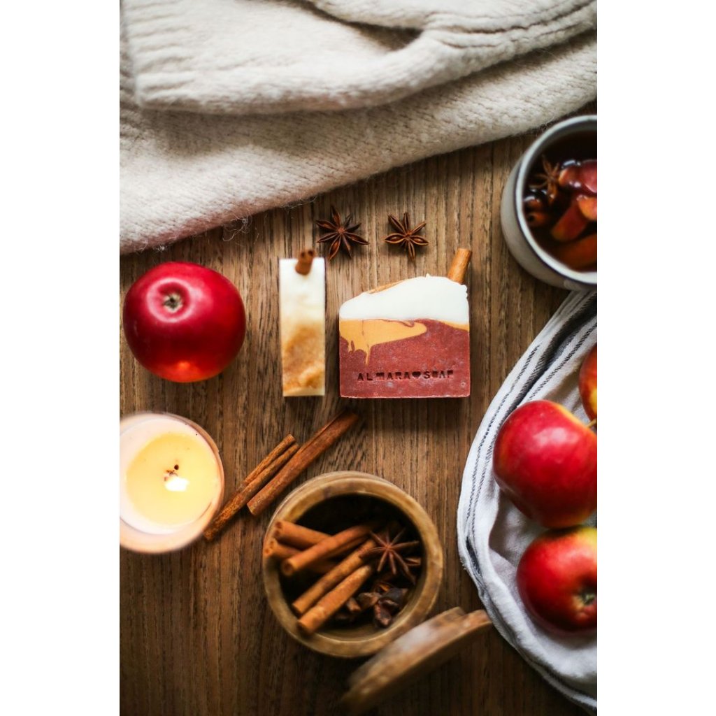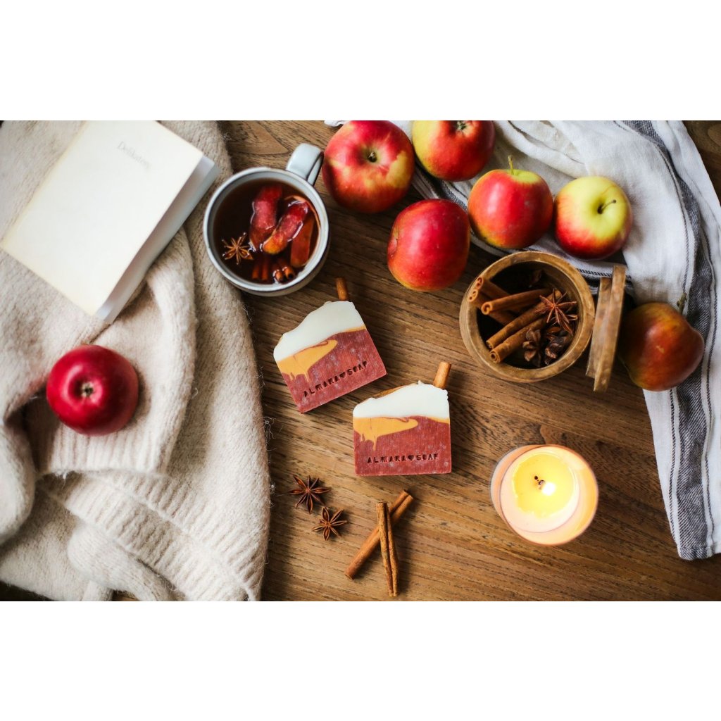 Díky čerstvému jablečnému pyré, které jsme připravili těsně před výrobou, je i letošní podzim obohacen o oblíbené jablkové mýdlo z českých jablek. Neodolatelná svěží jablečná vůně těch nejkvalitnějších sladkých jablíček doplněná podzimními kořeními vás jako vždy potěší.