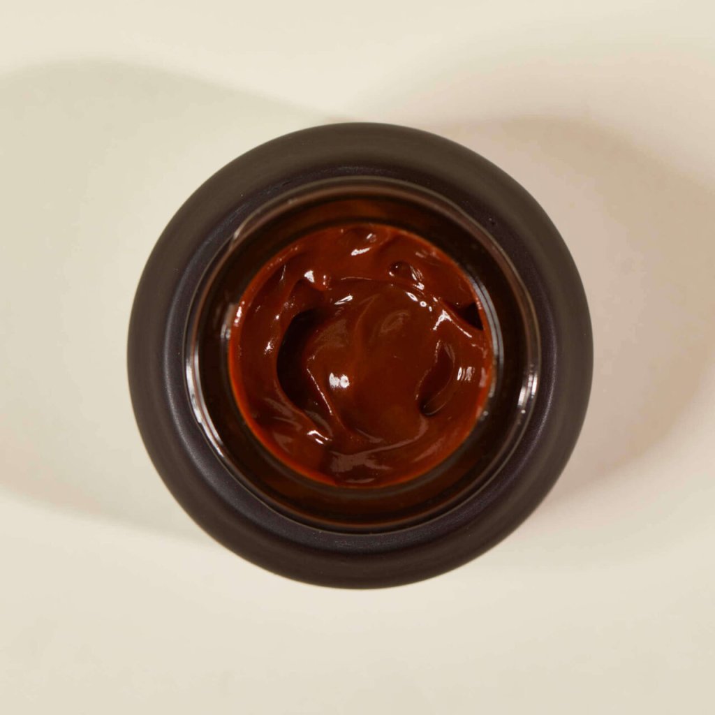 Červená maska v sobě ukrývá sílu dračí krve podpořenou ibiškovým práškem, který zabraňuje poklesu kyseliny hyaluronové v pleti.