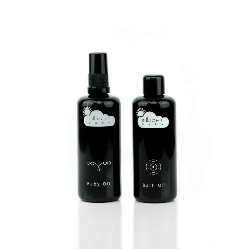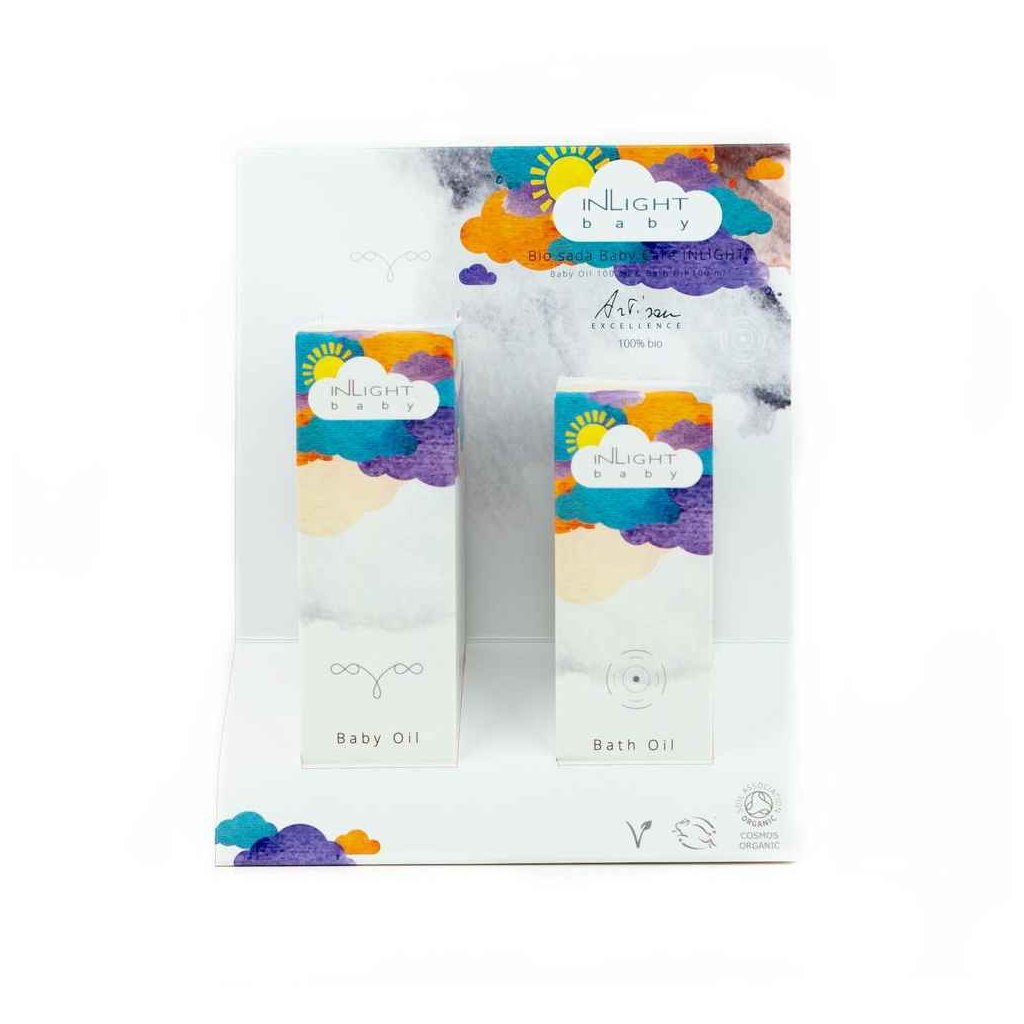 Cenově zvýhodněné balení obsahuje: Bio dětský koupelový olej INLIGHT® 100 ml, Bio dětský tělový olej INLIGHT® 100 ml