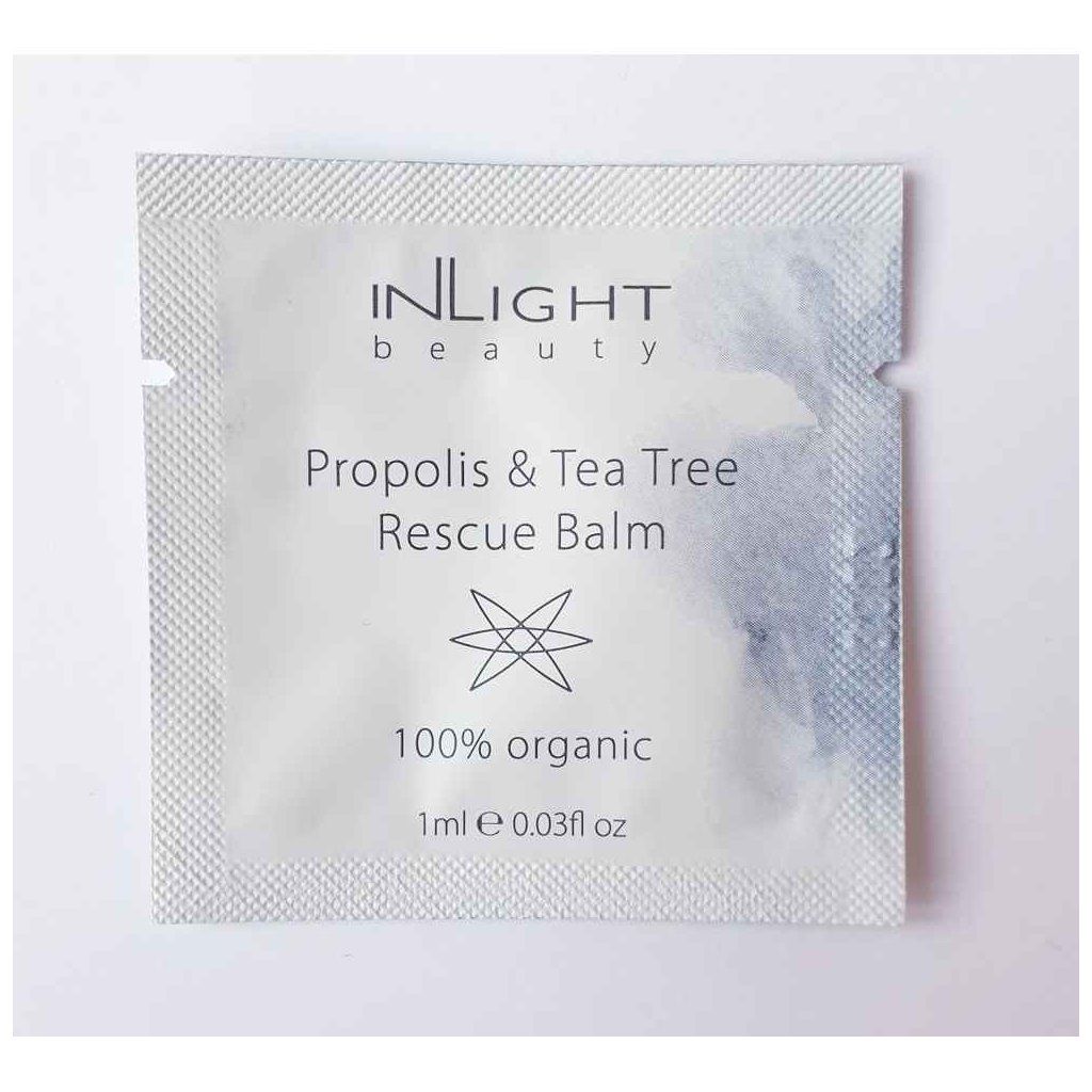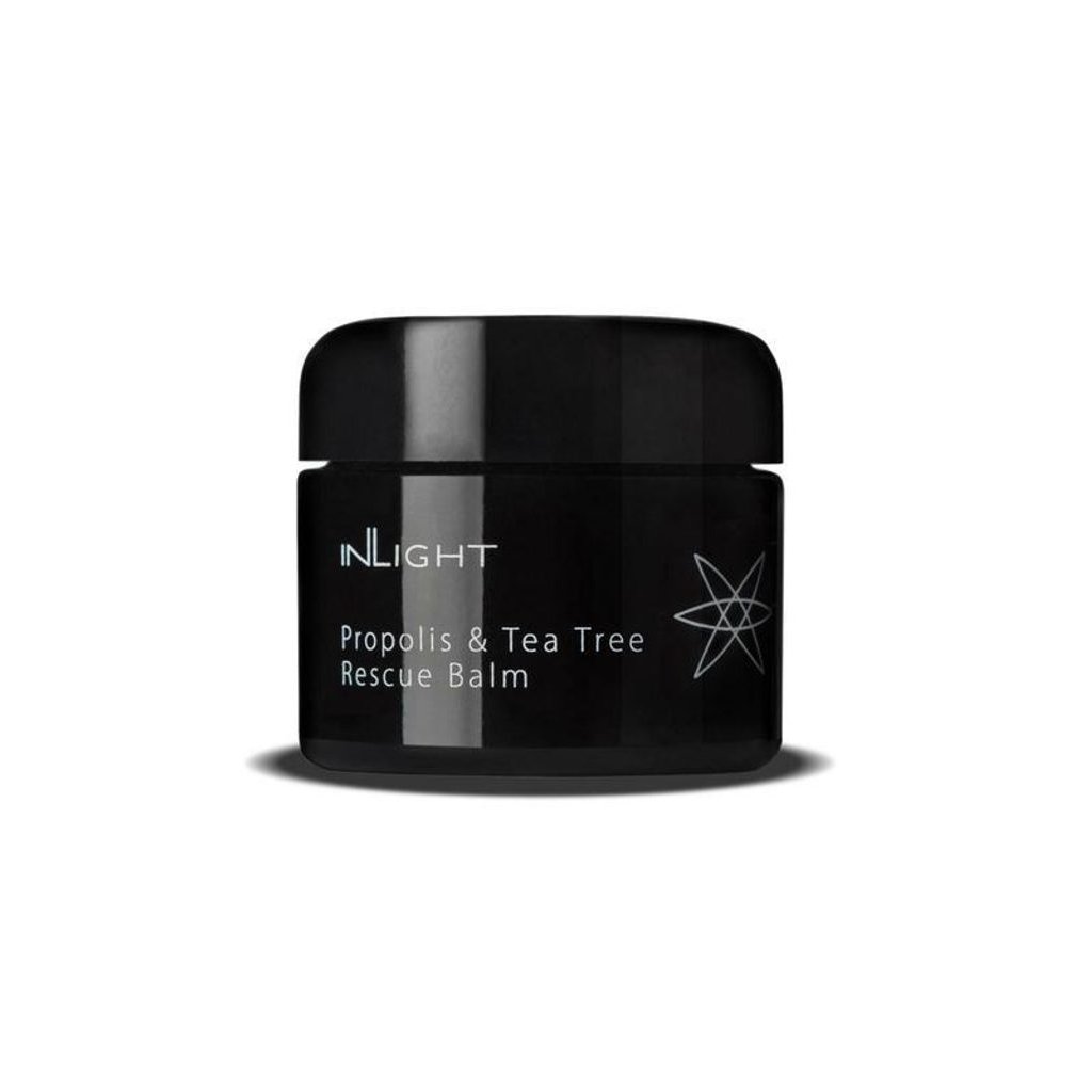 Lékař, homeopat a odborník na léčebnou fytoterapii MUDr. Spiezia vyvinul tento bio balzám jako doplněk bio kosmetické péče Inlight pro problematické typy pleti. Rescue balzám je namíchán z řady bylin, včetně propolisu a oleje tea tree, které jsou v léčitelství po staletí používány jako účinní pomocníci v boji proti akné, včetně vážnějších forem. Přirozeně silná, 100% bio a antibakteriální formule se hodí nejen na problematické zóny obličeje, ale také na tělo (například rozpraskané paty). Za svou účinnost vděčí především propolisu a kadidlu, jež mají velmi silné antibakteriální účinky, stejně tak olej tea tree, který zároveň napomáhá hojení a vysoušení ran.
