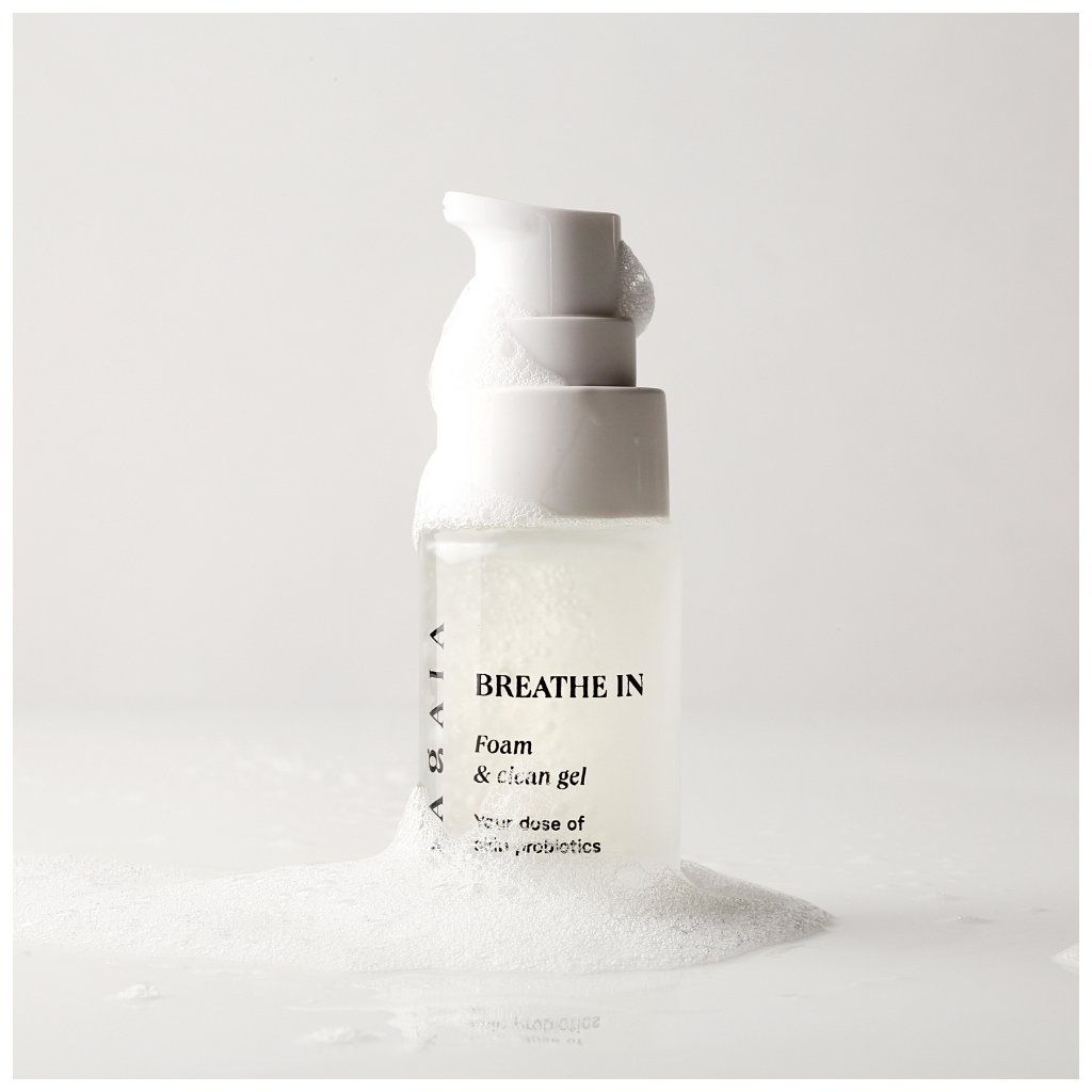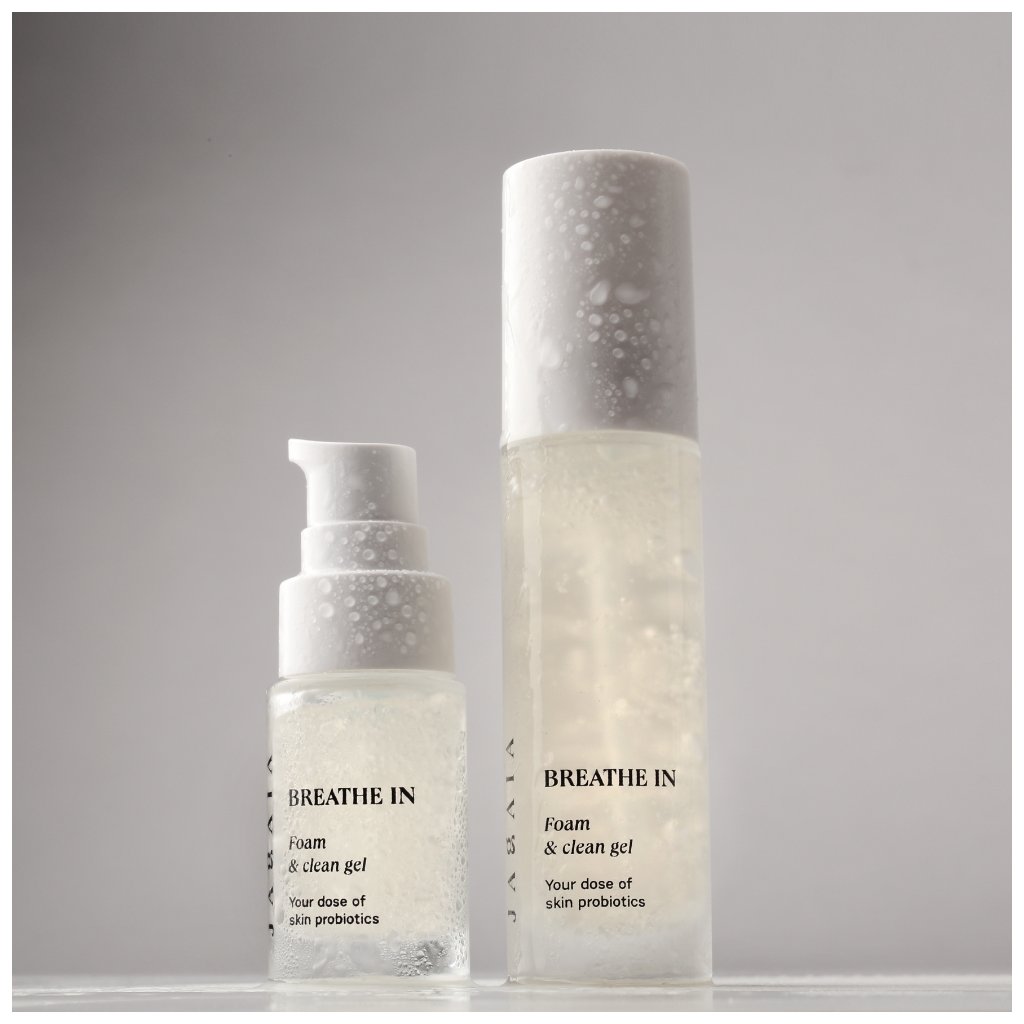 Čistící gel Breathe in je velmi jemný a šetrný k pokožce. Jeho složení je nabité fermenty a probiotiky, efektivně si poradí s odstraněním make-upu, nečistot a špíny na pleti, aniž by narušoval přirozenou bariéru kůže.