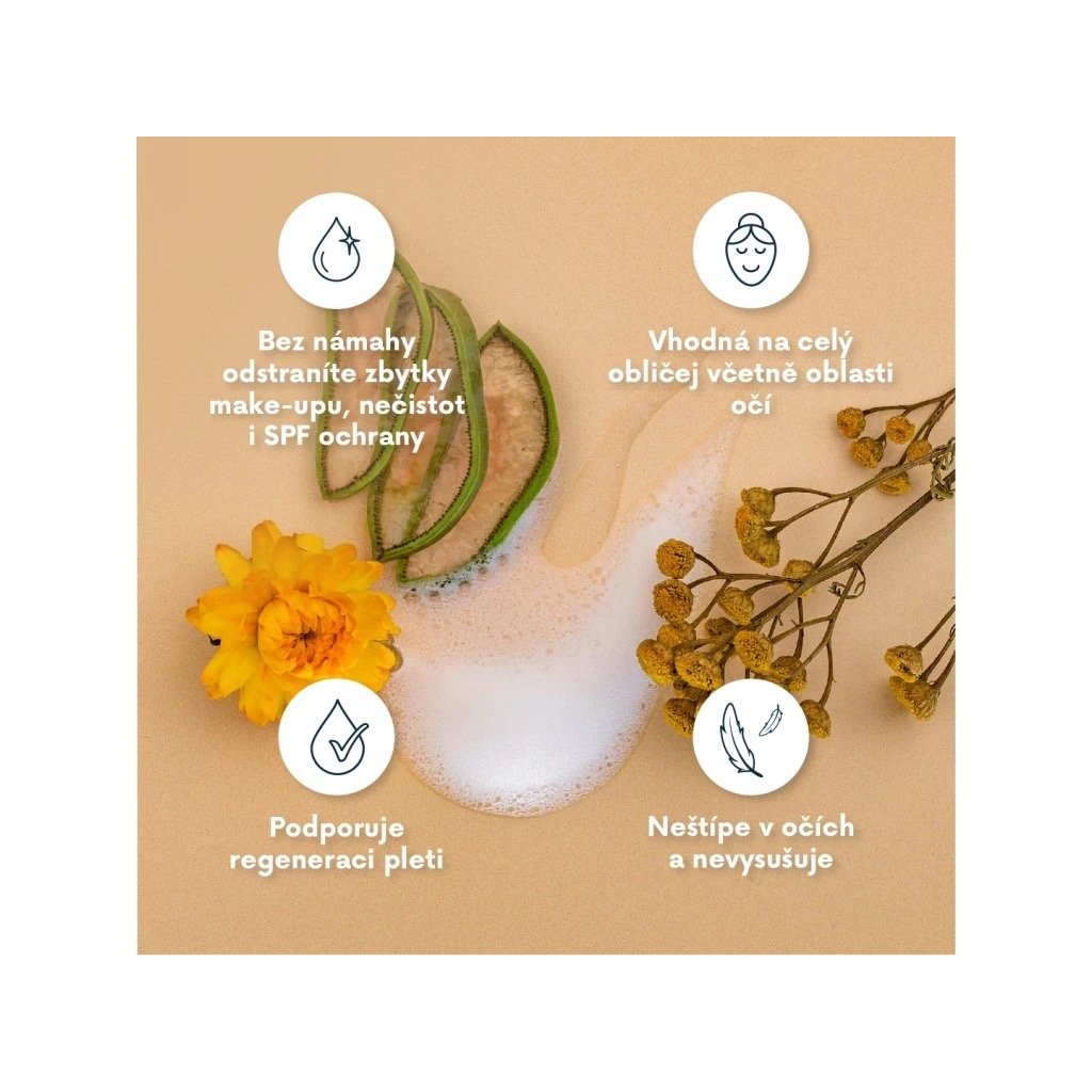 - Jemně a důkladně čistí, nevysušuje pokožku