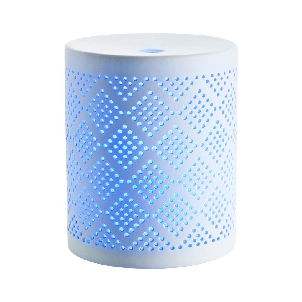Bílý keramický difuzér čistého zenového designu kombinuje blahodárné účinky aromaterapie a světla. Rozptyluje éterické oleje pomocí vody a ultrazvuku, díky čemuž se éterické oleje nepřepalují a zachovávají si tak všechny vlastnosti, důležité pro jejich aktivní účinek v ovzduší. Jemné světelné paprsky volitelné barvy v odstínech červené, oranžové, žluté, zelené, fialové a modré prozařují keramickým stínidlem a podporují vaši momentální náladu nebo doplňují atmosféru prostoru. Podbarvení můžete také vypnout. Difuzér decentně rozptyluje do ovzduší jemnou mlhu, která s sebou nese vůni éterických olejů. Pokud hladina vody klesne příliš nízko, difuzér se automaticky vypne.