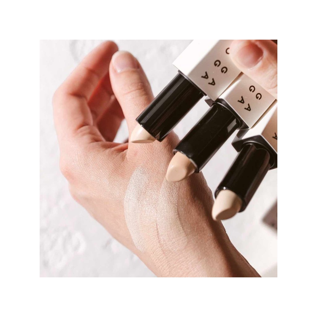 Korektor v tyčince Uoga Uoga je namíchán z olejů jojoby, avokáda, moringy, arganu a ricinu, které mu dodávají jemnou krémovou texturu pro snadné nanášení a poskytují pokožce bohatou výživu a hydrataci. Stabilitu a konzistenci korektoru zajišťuje včelí a karnaubský vosk, zatímco matný vzhled dodává rýžový prášek a minerální pigmenty.
