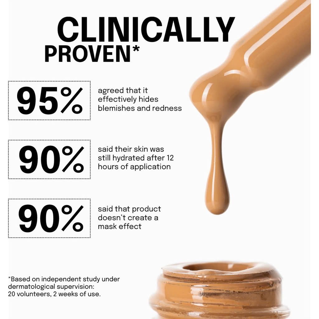 3) Konzistence: Lehká a rychle se vstřebávající tekutá textura se hladce roztírá a vypadá naprosto přirozeně.